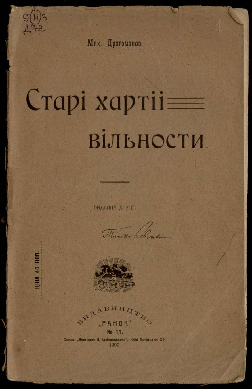 Старі хартії вільности : Історичні нариси / М.П. Драгоманов. – Вид. – 2-ге. – Вид-во: Ранок, 1907. – 84 с.