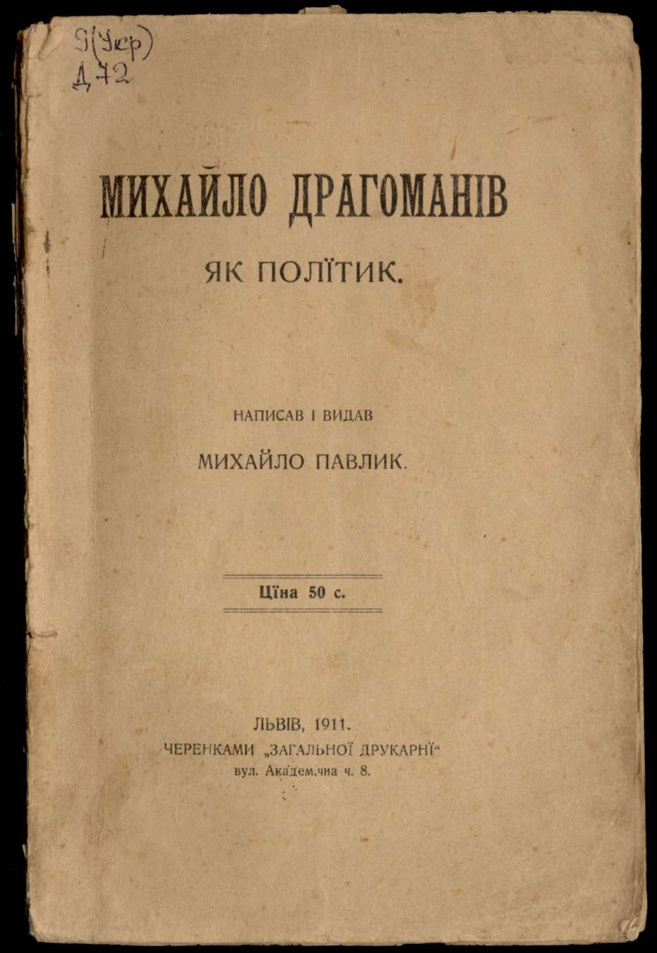 Михайло Драгоманів як політик / Написав і видав М. Павлик. – Львів, 1911. – 56 с.