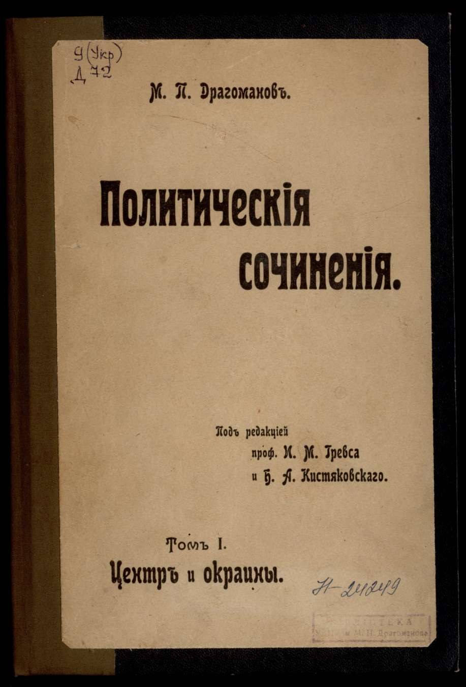 Политические сочинения : Т.1 : Центрі и окраині / Под ред. И. М. Гревса, Б. А. Кистяковского. – М., 1908. – 486 с.