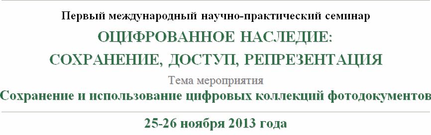 Перший Міжнародний науково-практичний семінар ОЦИФРОВАНЕ НАДБАННЯ: ЗБЕРЕЖЕННЯ, ДОСТУП, РЕПРЕЗЕНТАЦІЯ Тема заходу Створення і використання цифрових колекцій фотодокументів /